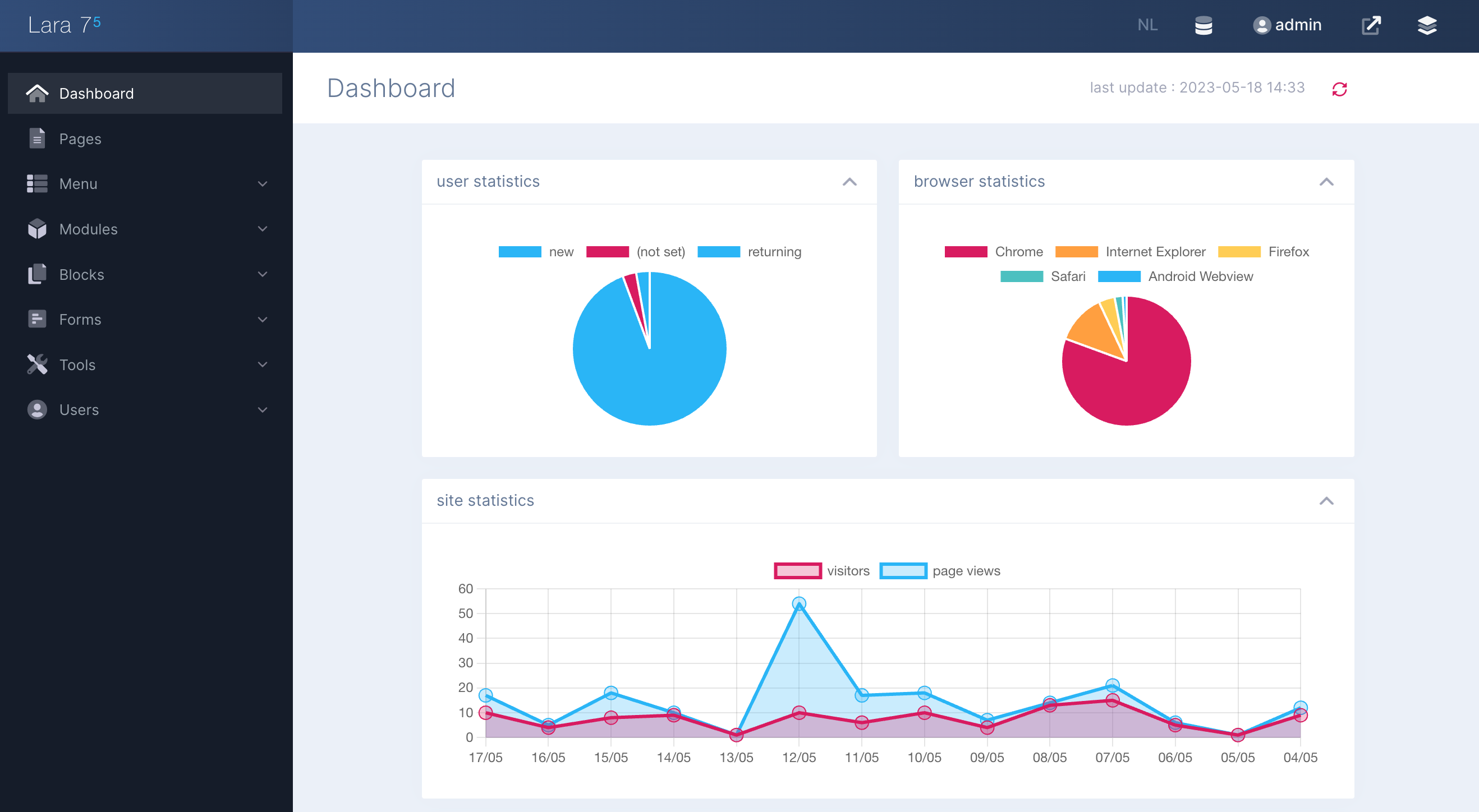 Lara CMS is a powerful and extremely flexible Content Management System, that is built on Laravel.